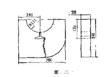 某廠因煤閘板前聯(lián)箱保護(hù)吊掛磚即斷裂脫落而被迫停爐,由于該部位結(jié)構(gòu)原因(見圖一前聯(lián)箱吊掛拱及圖二特型吊掛轉(zhuǎn)),聯(lián)箱吊掛磚每塊重達(dá)16公斤,并依靠“丄”型溝槽吊著自身重量和承擔(dān)其上部部分磚的壓力。聯(lián)箱在熱狀態(tài)下工作時(shí)會(huì)發(fā)生熱膨脹,再加上前述原因,便發(fā)生了特型耐火磚在薄弱處的斷裂(見圖二)。前聯(lián)箱保護(hù)吊掛磚共48塊,運(yùn)行中發(fā)現(xiàn)有幾塊掉磚,停爐檢査時(shí)又發(fā)現(xiàn)其它未掉下來的轉(zhuǎn)多數(shù)都有裂縫,如果換磚就需拆掉前墻,更換后還必須按要求時(shí)間烘妒,而且也難保不再掉磚,這將措成較大的經(jīng)濟(jì)損失和材料浪費(fèi)。